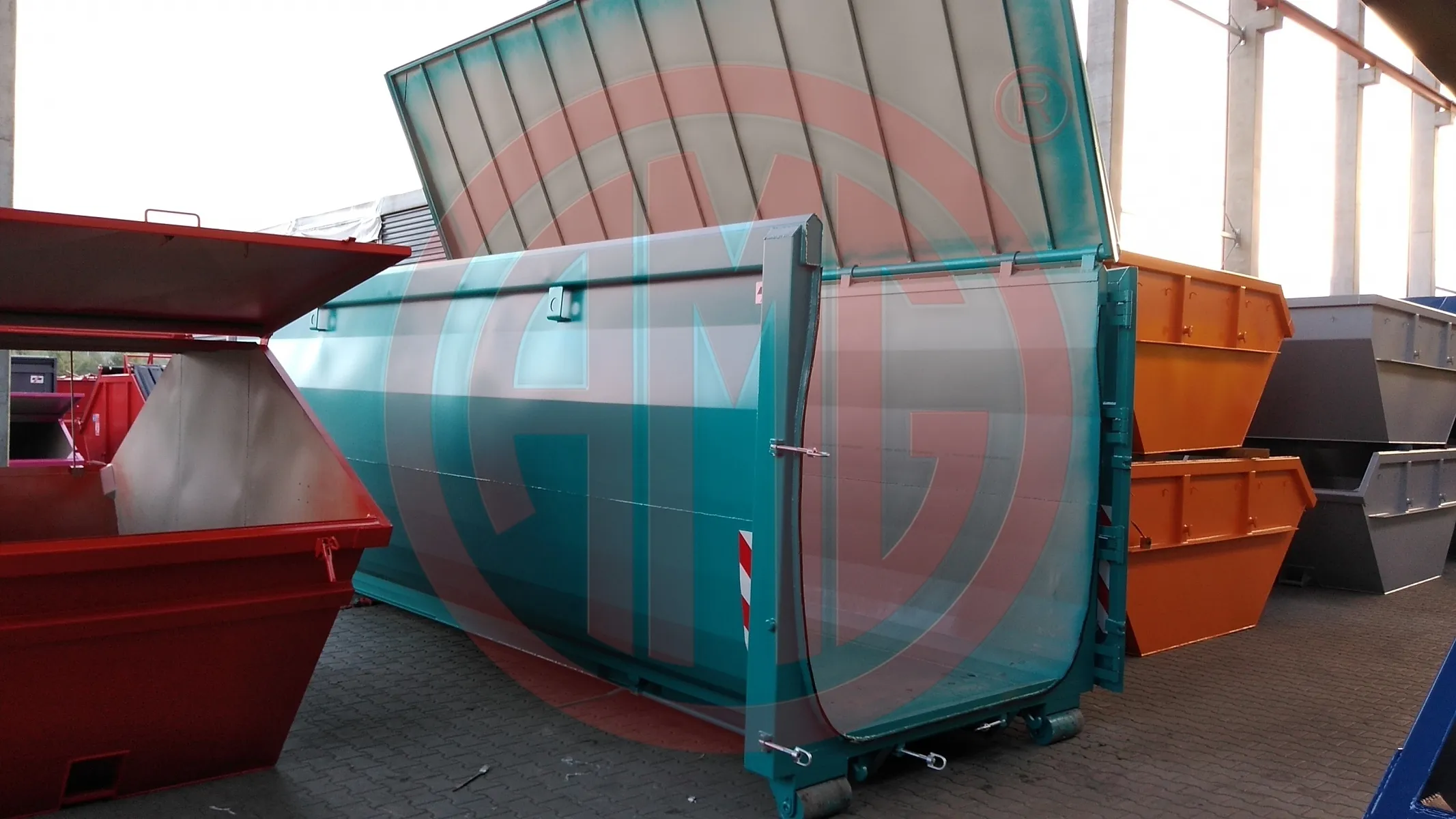 Abfallbehälter, Abfallcontainer, Abfallsammler, Abfalltonne, Abrollcontainer, Abroller, Baucontainer, Citycontainer, Container, Containermulde, Entsorgungscontainer, Gewebeplane, Großmüllbehälter, Großmüllcontainer, Hakencontainer, Hakensystem, Lagercontainer, Müllbehälter, Müllcontainer, Müllgroßbehälter, Sammelbehälter, Schuttmulde, Schutzplane, Schüttcontainer, Stahlcontainer, Standardaufnahmebügel, Abrollcontainer mit abgerundeter Bodenwanne, Abrollcontainer eckige Bauart, Boden/Seiten 90°, verstärkte Großcontainer mit schwerer Doppelflügeltür, Standard-Großcontainer mit Doppelflügeltür, flache Standardcontainer mit Doppelflügeltür,Container mit flüssigkeitsdichter Pendelklappe , City-Container mit Doppelflügeltür, City-Container mit Entleerungsklappe, Container mit pendelbarer Doppelflügeltür (französische Tür), flache Schüttcontainer mit Entleerungsklappe, Bauschutabroller, Container mit flüssigkeitsdichter einflügeliger Tür, Abrollbehälter für Hausmüll, ASK Behälter/Container, Aufeinandersetzbare Container, Bauschuttcontainer, Citybehälter, Hardox-Box, Hardox Halbschalenmulden, Hausmüllcontainer, Kippaufbau, Klappdeckelbehälter, Kleincontainer, Lagercontainer, Magazincontainer, Minimulden, Normbehälter, Plattformen, Rollplanenbehälter, Schiebedeckelbehälter, Sondercontainer, Zweiseiten-Kippbrücke