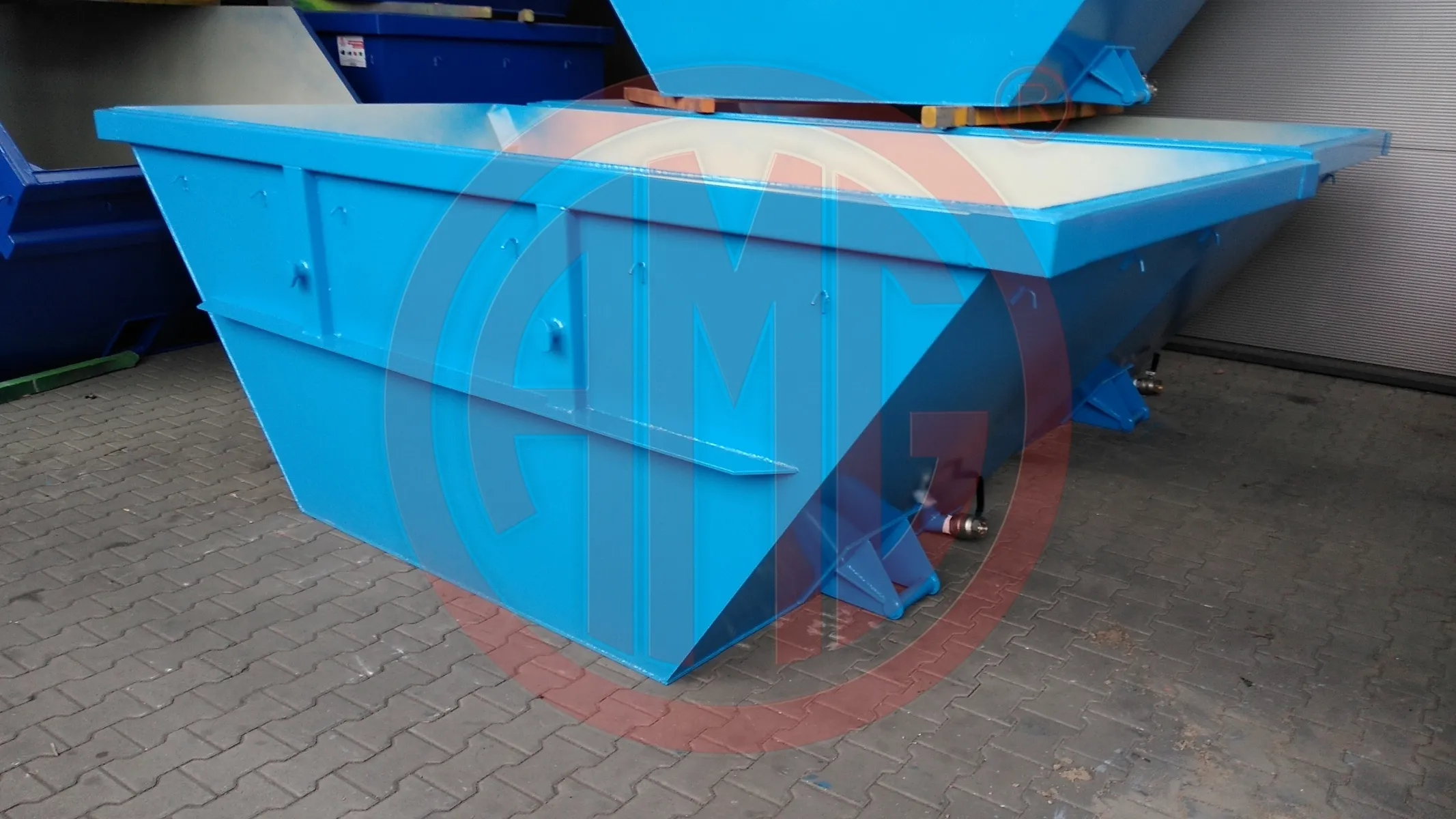 Container voll verschweißt, entfettet, gestrahlt, innen und aussen grundiert mit Alkydgrundfarbe 40um, außen lackiert mit Alkydharzlack 30 µm in RAL-Farbton gem. Kundenvorgabe. Lieferung frei Haus