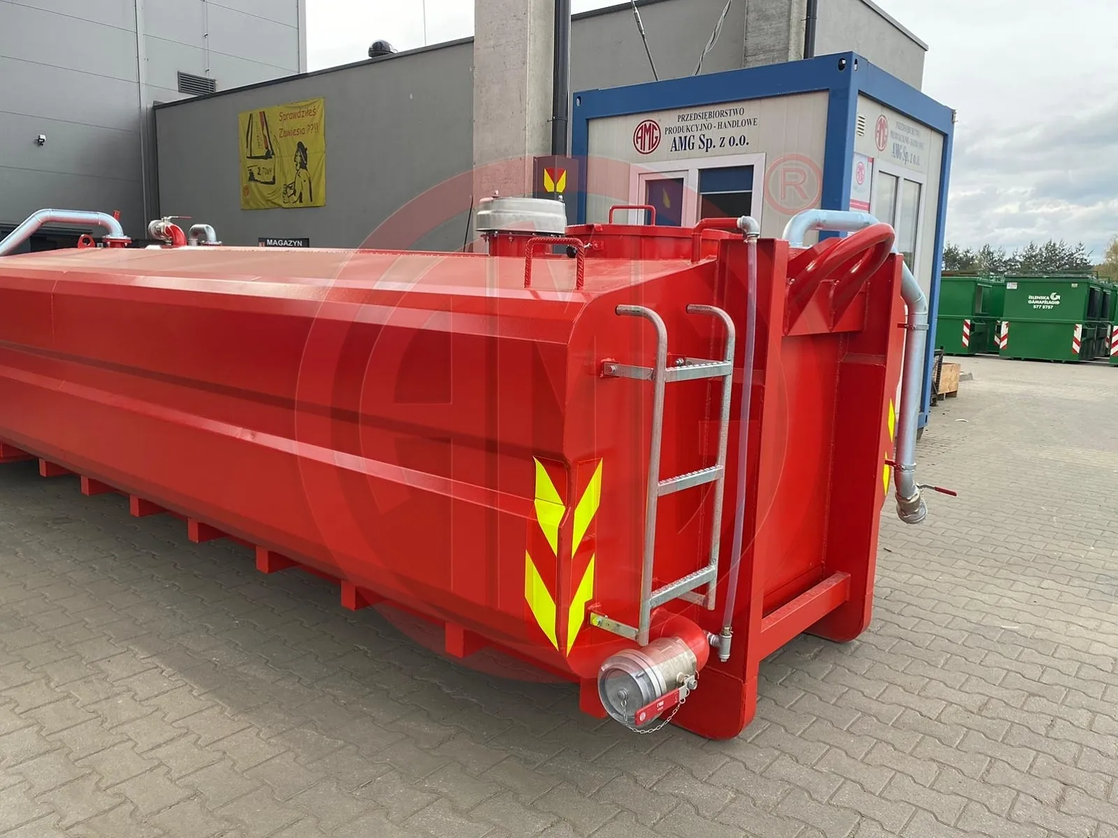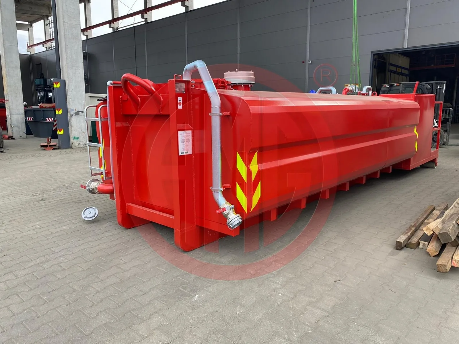 Abrollcontainer Löschwasser komplett geschlossen mit mind. 11.000 l Volumen
