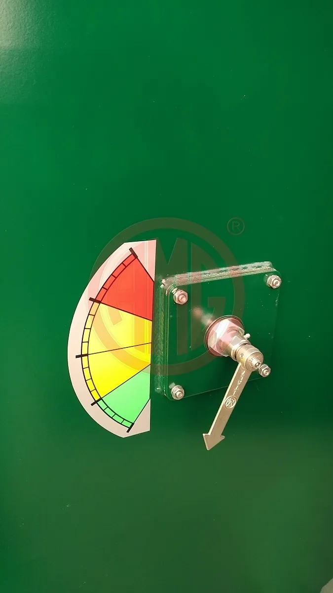 - vorne Stirnseite Füllstandsanzeige mit Zeiger Füllstandsanzeiger: